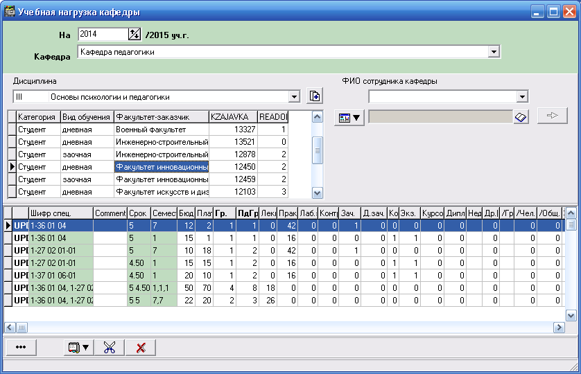 Подсистема "Кафедра"служит для автоматизации работы сотрудников кафедр по распределению учебной нагрузки.